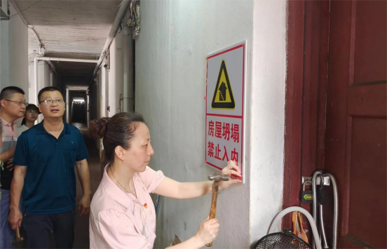 6月20日上午,星光集团公司党支部开展以“党建引领聚合力,排查隐患保安全”为主题的党日活动。 炎炎夏日,在支部书记、公司总经理陈丽雪的带领下,大家冒着酷暑,对星光社区50年以上老旧房屋等重点房屋开展专项整治,逐户逐栋排查,查看老旧房屋安全隐患、了解房屋居住人数、安全措施等情况。同时,组织全体党员干部在老旧房屋上张贴安全警示牌、告知牌、拉警示带等,并明确告知用户各楼栋管理人员及安全员的联系电话等。党员们分工协作,汗流浃背,确保社区每一处老旧房屋安全能够得到保障。