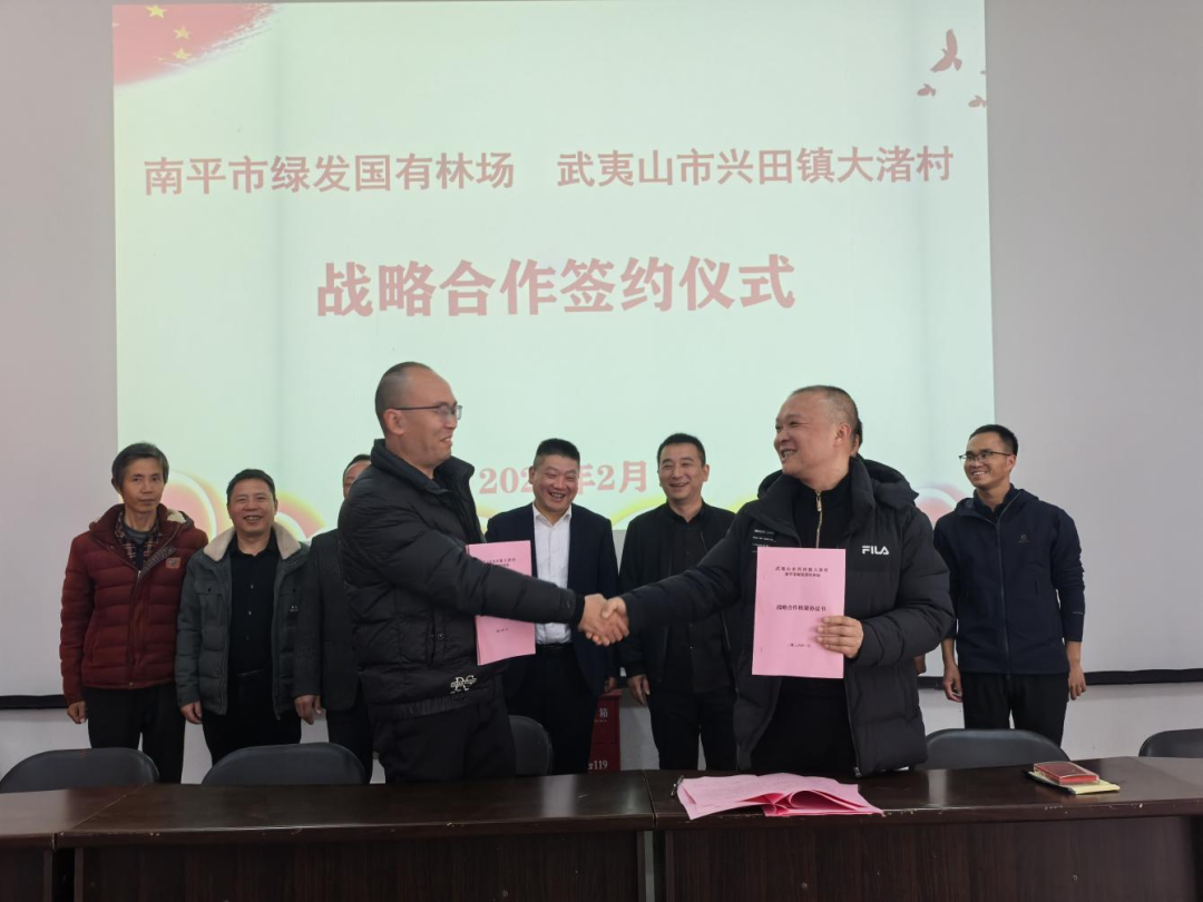 为深入践行“绿水青山就是金山银山”的发展理念,推动林业高质量发展,服务乡村全面振兴,2月6日上午,南平市绿发国有林场与武夷山市兴田镇大渚村正式签署合作造林协议。NO钱包(中国)官方网站 党委书记、董事长魏苑平,副总经理胡统德,兴田镇党委副书记花东游,大渚村下派书记陈清松、村主任卓学松,以及南平市绿发国有林场相关负责人共同出席了签约仪式。